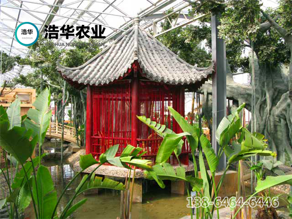 绿色生态餐厅完全按照标准温室的结构建造,多采用文洛式,覆盖材料多为PC板或者玻璃,结构保温性能好,整齐规范,室内各个空间温度均匀,有利于景观植物的生长,鉴于餐饮布局的需要,在文洛温室结构的基础上,可进行局部调整。该温室建造成本相对较低,温室升降温能耗低,节约后期运行费用。