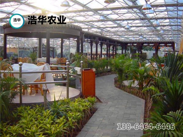 绿色生态餐厅完全按照标准温室的结构建造,多采用文洛式,覆盖材料多为PC板或者玻璃,结构保温性能好,整齐规范,室内各个空间温度均匀,有利于景观植物的生长,鉴于餐饮布局的需要,在文洛温室结构的基础上,可进行局部调整。该温室建造成本相对较低,温室升降温能耗低,节约后期运行费用。