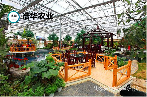 绿色生态餐厅完全按照标准温室的结构建造,多采用文洛式,覆盖材料多为PC板或者玻璃,结构保温性能好,整齐规范,室内各个空间温度均匀,有利于景观植物的生长,鉴于餐饮布局的需要,在文洛温室结构的基础上,可进行局部调整。该温室建造成本相对较低,温室升降温能耗低,节约后期运行费用。