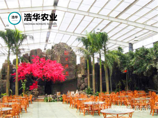 绿色生态餐厅完全按照标准温室的结构建造,多采用文洛式,覆盖材料多为PC板或者玻璃,结构保温性能好,整齐规范,室内各个空间温度均匀,有利于景观植物的生长,鉴于餐饮布局的需要,在文洛温室结构的基础上,可进行局部调整。该温室建造成本相对较低,温室升降温能耗低,节约后期运行费用。